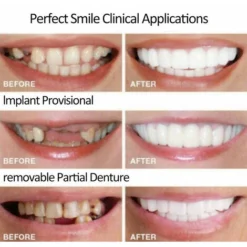 Aucune visite chez le dentiste requise Nos dents cosmétiques aident à cacher vos dents manquantes, pliées, tachées et cassées. La liberté de sourire, de manger et de boire tout en les portant. Beau sourire Coloration naturelle des dents. Améliorez votre sourire avec une solution réaliste, avec un réaliste