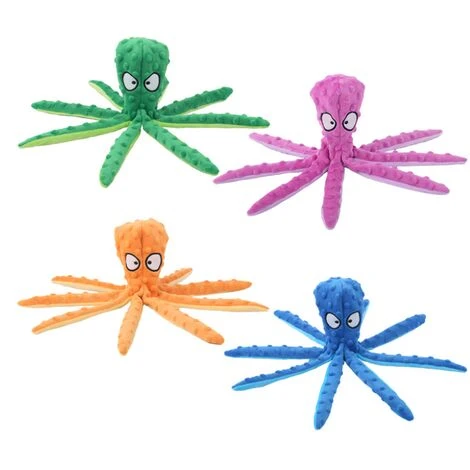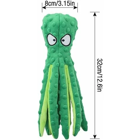 [ Jouets non Rembourrés ] Nos jouets de poulpe grinçant ne contiennent aucun autre remplissage dangereux qui pourrait empêcher les animaux de compagnie de mâcher les jouets. [ Grinçant ] La tête du jouet est équipée dun dispositif de grincement. lorsquun animal le mord, un son bb est émis pour éveiller lintérêt de lanimal. Chaque patte du calmar est recouverte de papier dimpression. [ Matériaux de Haute Qualité ] Le jouet en peluche utilise un tissu composite à mailles sandwich en cristal super doux, qui est plus résistant que le tissu à une seule couche. doux et élastique. [ Octopus design ] Le jouet pour chien a la forme dune pieuvre, ce qui est mignon et intéressant et peut attirer les chiens. Les longues pattes conviennent également aux chiots pour mâcher et jouer. [ deux Couleurs ] Il existe deux produits, le bleu et le vert, qui peuvent être utilisés alternativement pour un nettoyage et un remplacement faciles.