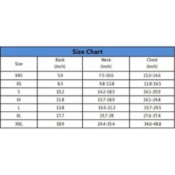 XS : Tour de poitrine : 30 à 42 cm, Poids du chien : 3 à 7 kg.