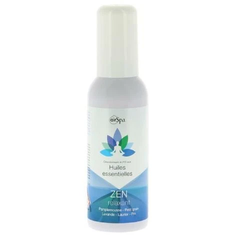 AIR SPA Spray – Parfum Zen – Contenance 50 ml – Composition 100% naturelle a base d’huiles essentielles de pamplemousse, laurier, petit grain et pin – Ne pas vaporiser sur les tissus