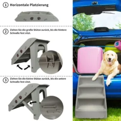 Pas besoin de monter et se replie facilement pour le rangement ou le transport. Les rails de sécurité intégrés et les pieds antidérapants permettent aux animaux de grimper en toute confiance. En outre, le dessous est antidérapant, ce qui garantit une grande stabilité et la sécurité des animaux. Son style moderne s’adapte bien à la plupart des décorations.