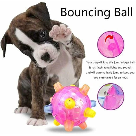Balle sautante pour chien : votre chien adorera sûrement cette balle d’activation de saut à LED. Livré avec une lumière LED attrayante, des sons et saute automatiquement. Maintient et attire l’attention du chien et divertit vos chiens, chiots ou chats pendant des heures.