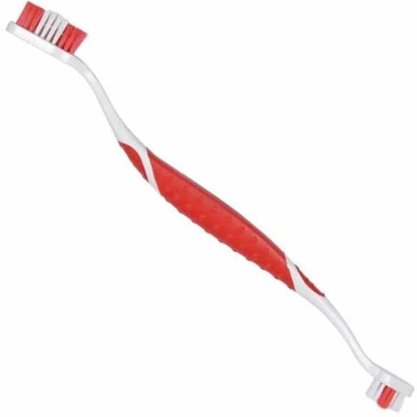 La Brosse à Dents de Beaphar, associée à la Pâte Dentifrice Beaphar, permet une protection totale des dents de votre chien. Il faut brosser les dents du chien régulièrement afin d’éliminer la plaque dentaire dès qu’elle commence à se déposer pour éviter l’apparition d’une mauvaise haleine et une dégradation de la dentition. Cette brosse à deux têtes convient à toutes les tailles et races de chiens. Son manche souple et antidérapant vous assure une manipulation pratique et confortable. La brosse a été spécialement conçue pour la dentition du chien : les poils n’ont pas tous la même taille pour permettre d’atteindre toutes les dents, même les endroits de la gueule les plus difficiles d’accès. Enfin, les poils sont doux et flexibles afin de ne pas abîmer les gencives. Conseil d’utilisation : Avant le premier brossage, il est recommandé de faire découvrir le produit à votre animal de compagnie en mettant un peu de dentifrice sur votre doigt. Puis, vous pouvez appliquer un peu de dentifrice sur la brosse et la faire découvrir à nouveau à l’animal. Avant chaque utilisation, mouiller une des deux têtes de la brosse à dents puis y déposer une noix de dentifrice. Il faut, ensuite, brosser délicatement toutes les dents de votre animal domestique jusqu’à ce qu’elles soient bien propres. Le mieux est de commencer par nettoyer les canines, puis les molaires et enfin, les dents de devant. Précaution d’emploi : Pour des dents saines, il est indispensable de changer la brosse à dents de votre animal de compagnie tous les 3 mois au plus tard. Il faut également éviter que l’animal morde sa brosse. Par ailleurs, l’utilisation de dentifrice à usage humain est déconseillée. Celui-ci renferme, en effet, du fluorure en grande quantité qui risque de causer des problèmes de digestion chez l’animal. Cet article ne convient pas aux humains. à mettre hors de la portée des enfants.