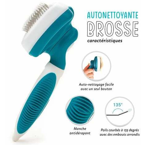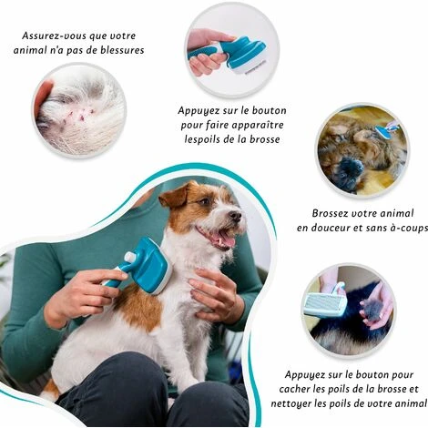 UTILISATION SIMPLE : grâce à son ingénieux système de boutons-poussoir, une pression complète sur le bouton blanc fera apparaître les dents et les empêchera de sortir sans avoir à tenir le bouton. Cliquez à nouveau pour cacher les dents et donc libérer tous les poils rassemblés pendant le brossage de votre animal.