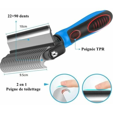 - 4.Réduit la perte de poils】 Ce peigne de toilettage 2 en 1 augmenter la circulation sanguine, réduit la perte de poils et laisse la fourrure de votre animal douce et brillante.