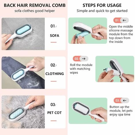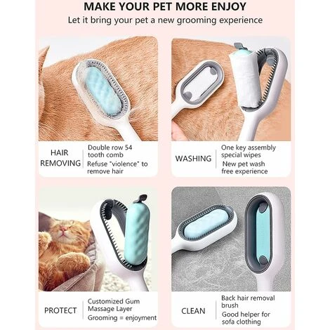 Dispositif de nettoyage unique : contrairement à d’autres peignes, notre peigne pour animaux de compagnie transporte des serviettes en papier humides pour enlever les poils flottants du dos de votre animal, tout en permettant un soin nettoyant des cheveux. Économisez votre temps de nettoyage.