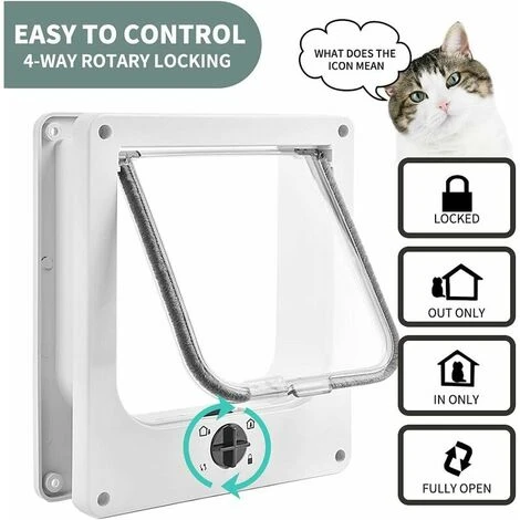 【Verrouillage à 4 Voies】 Quatre Modes (Entrée uniquement, Sortie uniquement, Entrée et Sortie, Fermé) peuvent être facilement contrôlés par le Bouton de la Porte.【Taille du Corps de l’Animal de Compagnie】 15 cm de Large * 15,5cm de Haut, Convient aux Chats avec un tour de Taille Inférieur à 41 cmpour traverser facilement la Chatière pour Chien.