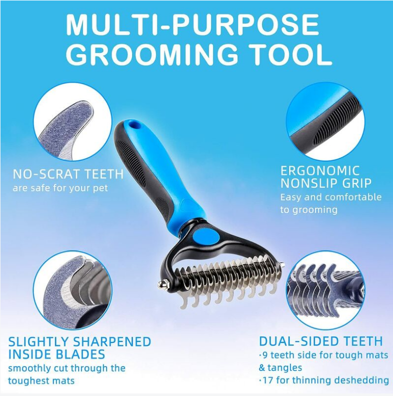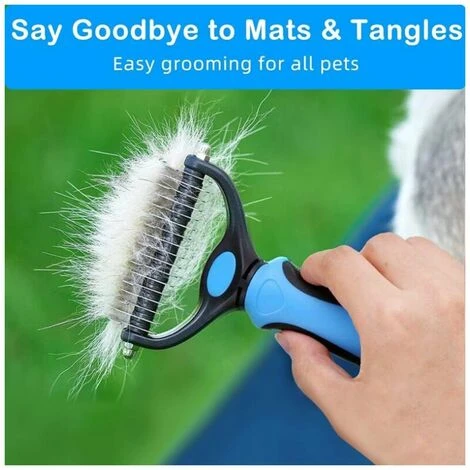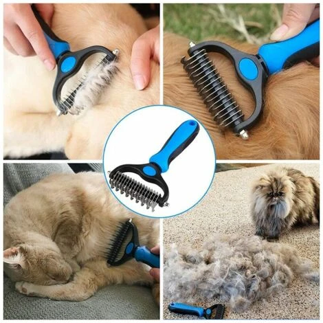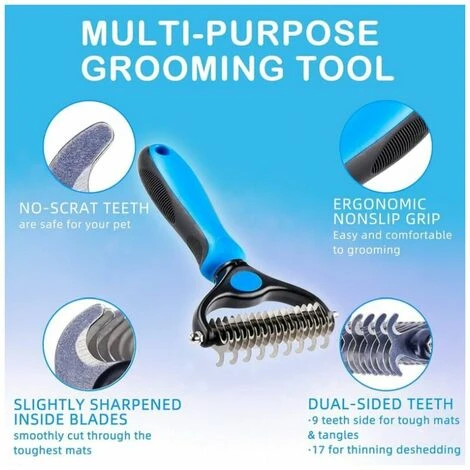 Design double face : commencez par le côté 9 dents pour les tapis tenaces et terminez avec le côté 17 dents pour effiler et démêler. Obtenez des résultats plus rapides et plus professionnels Confortable à utiliser : poignée en caoutchouc légère et antidérapante pour une prise en main confortable et une stabilité optimales. Vous apprécierez absolument votre temps de toilettage avec cette brosse pour animal de compagnie Cadeau idéal pour tous les amoureux des animaux de compagnie : notre râteau de toilettage est un outil de toilettage polyvalent, un accessoire indispensable pour les amoureux des animaux de compagnie, il sera un excellent choix de cadeau pour tous les amoureux des animaux de compagnie, ils vont l’adorer Pour de nombreux animaux de compagnie : le râteau de toilettage pour animaux de compagnie est une excellente option pour les animaux à poils longs ou moyens ; parfait pour les chats et les chiens avec poils ou fourrure ; nous ne recommandons pas l’utilisation sur les animaux à poils courts