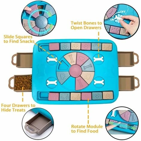 Convient aux chiens débutants et intelligents : Notre jouet de puzzle pour chien est de niveau modéré avec une difficulté plus difficile que le niveau 2. Non seulement des étapes de diapositives faciles, mais également votre chien doit apprendre les étapes pour rechercher des friandises cachées. Notre casino interactif pour chiens a une étape de glissement facile et une étape plus difficile dans les tiroirs de puzzle. Les petits et moyens chiens seront ravis !