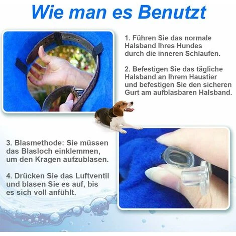 - 【PORTEZ CONFORTABLEMENT】 — Se compose d’une bague extérieure bleue et d’une bague intérieure blanche en plastique. La bague extérieure est en peluche courte et douce pour la peau et la bague intérieure en PVC a une bonne élasticité après gonflage. Votre chien ne se sentira pas réprimé ou nerveux en portant ce collier doux, chaud et confortable.