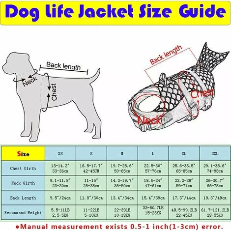 - VEUILLEZ CHOISIR UNE TAILLE APPROPRIÉE: Le gilet de sauvetage convient aux petits chiens, aux chiens moyens et aux grands chiens. Il dispose de 7 tailles, du XXS au XXL. Veuillez mesurer la circonférence de la poitrine et du cou de votre chien, en