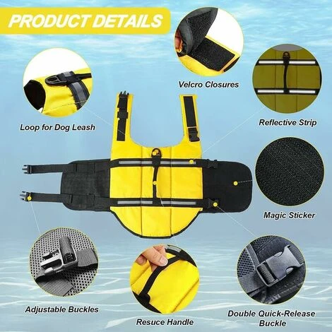 【Poignée de Secours et Bandes Réfléchissantes】Le gilet de chars de chiens comporte une poignée de sauvetage robuste sur le dessus, tout à fait pratique pour la saisir lors de la mise en place ou de l’aide de l’eau, rendez-vous totalement contrôlé votre chien. Et la flottation est également avec de larges bandes réfléchissantes, qui sont particulièrement bénéfiques pour les propriétaires qui marchent leurs chiens le soir