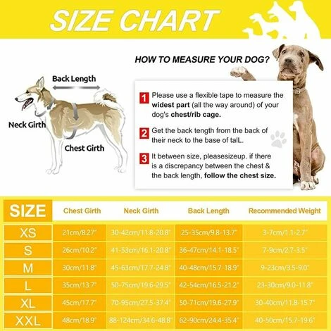 【Sélection de la Taille et Rappel de Sécurité】Pour le meilleur ajustement, veuillez mesurer le cou et la poitrine du chien avant d’acheter une gilet de sauvetage pour chiens, puis de vous référer à notre tableau de tailles pour choisir une gilet de sauvetage de chiens approprié. Si le résultat de la mesure est compris entre deux tailles, nous recommandons la taille plus grande. Pour la sécurité du chien, veuillez ne pas laisser le chien utiliser la gilet de la vie de chien seul