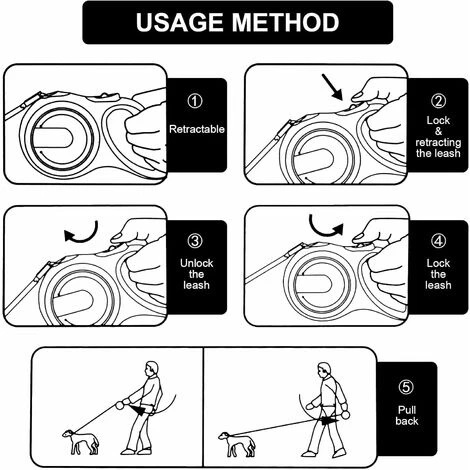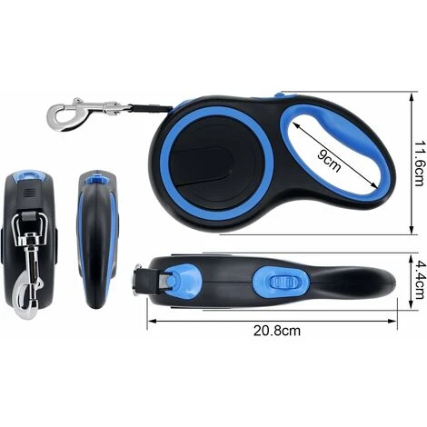La taille de la laisse pour chien est de 20,8 x 11,6 x 4,4 cm (environ 8,18 x 4,56 x 1,73) ; poids : 385g.