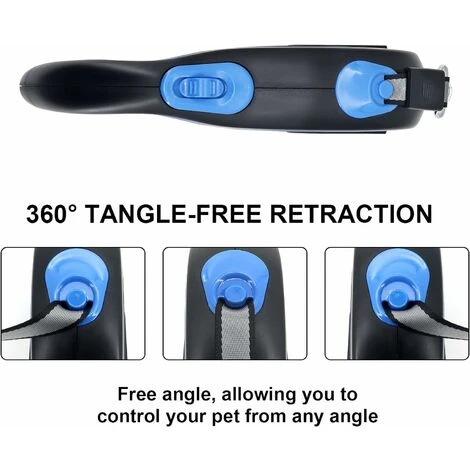 Rétractable et arrêt avec bouton de verrouillage, laisse pour chien laisse rétractable de 8m, Facile à freiner / mettre en pause / verrouiller avec un bouton de frein à une main dans un endroit pratique, avec la fonction de pause, vous pouvez utiliser