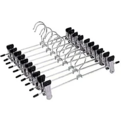 - Cintres en métal avec clips pour pantalons, jupes, vestes et plus.^ Rangement peu encombrant – Avec crochets en métal – Rotation à 360 degrés – Clips en métal avec revêtement antidérapant^ Dimensions (L) : env. 28,5 cm ^ Matériau : PVC + acier à haute teneur en manganèse ^ Poids (1 pièce) : environ 34 g ^
