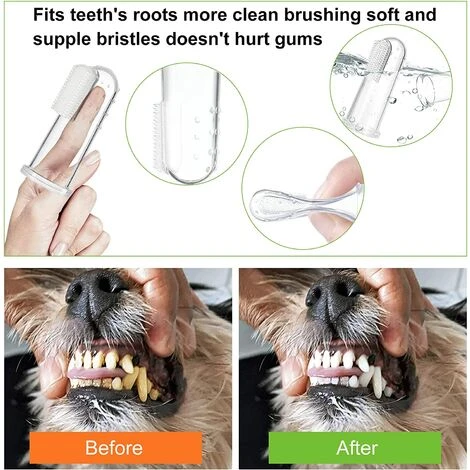 Facile à utiliser】Notre brosse à dents pour chien rend le nettoyage des dents de votre animal de compagnie un processus simple. Il suffit de placer votre doigt dans cette brosse à dents et de nettoyer sur les dents de votre animal. La brosse à dents à bout de doigt peut être réutilisée.