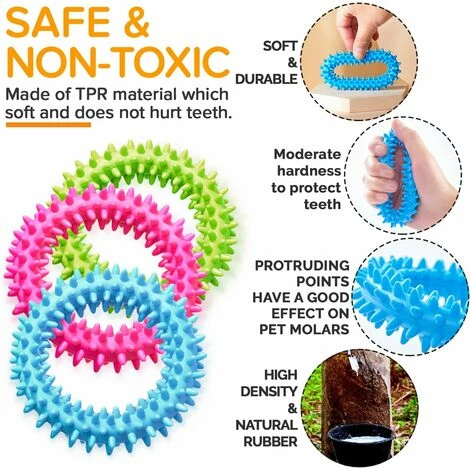 LOT DE 3 JOUETS POUR ANIMAUX – Ces jouets pour chiots comprennent 3 jouets en caoutchouc en forme d’anneau. Ce jouet pour chien aidera les chiots à développer de saines habitudes de mastication, résout des problèmes tels que la mastication, le nettoyage des dents, l’anxiété, l’ennui, les aboiements ou d’autres problèmes.