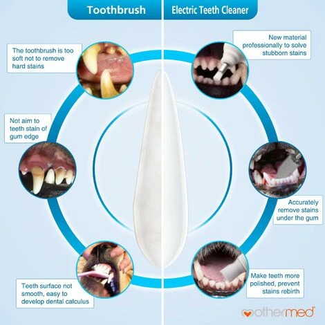 [Soins dentaires pour votre animal de compagnie bien-aimé] – Le nettoyant pour dents pour animaux de compagnie Mothermed peut nettoyer efficacement les taches dentaires, le tartre et le tartre de l’animal. L’utilisation d’un polisseur de dents professionnel électrique dans la routine de soins dentaires actuelle de votre animal se traduira par une haleine plus fraîche, réduisant ainsi les inquiétudes concernant la santé de votre animal bien-aimé. Merveilleux cadeaux pour les animaux de compagnie. ^ [Matériau de qualité supérieure respectueux des dents] – Les brosses sont fabriquées à partir de matériaux en silicone qui font du bien aux dents de l’animal, en utilisant un mouvement de puissance électromagnétique de sorte que la rotation à grande vitesse de la brosse permette à sa surface de meulage à haute fréquence de traiter professionnellement le problème de taches d’animaux et de tartre dur. ^ [Conception fiable et polyvalente] – Le nettoyant pour chien Mothermed ne fonctionne normalement que lorsqu’il est dans le plug-in électrique. Équipé de trois modes de fonctionnement et de quatre types de têtes de brosse différents pour un nettoyage plus approfondi des dents de votre animal de compagnie bien-aimé. En particulier, la taille de la tête de brosse est de 1,33 pouce après l’installation de la brosse. Le bruit est de 80 dB lorsqu’il est utilisé. ^ [Facile à utiliser] – Installez une brosse et appliquez la quantité appropriée de dentifrice dessus, puis placez-la sur la tache et allumez l’interrupteur pour faire pivoter. Après utilisation, veuillez retirer la brosse et la nettoyer, la sécher et la remettre dans la boîte de rangement. Utilisation : installez 2 piles AA ou des plug-ins USB, veuillez ne pas utiliser des piles AA et des plug-ins USB en même temps. Après 3 secondes d’appui, le produit est fermé.^