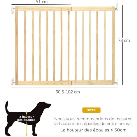 – Hauteur 0,73 m idéale pour éviter que votre animal ne passe par dessus