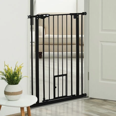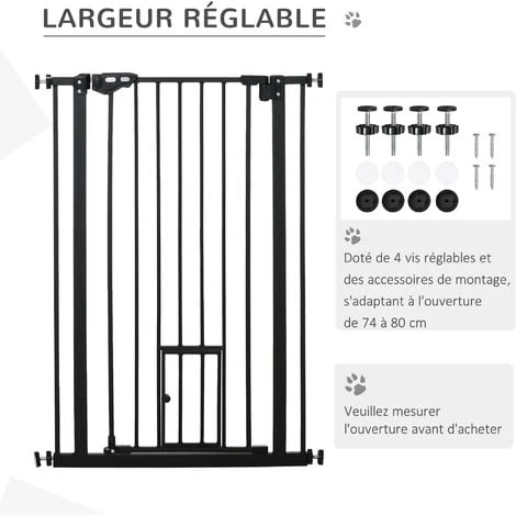 – Barrière de sécurité équipée de 2 portes verrouillables (une grande, une petite) adaptées pour chien et chat