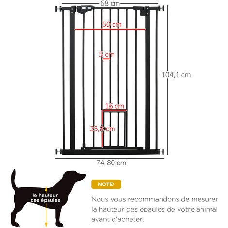 – Hauteur de 1,04 m idéale pour éviter que votre animal ne passe par dessus