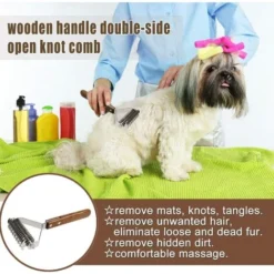 - DOS HOJAS DE ACERO INOXYDABLE: Différents tamaños de rastrillo le permiten usar el rastrillo más grande para aflojar la estera y luego ir más deep en la capa lower con el lado pequeño del rastrillo. Seguro y Sharp pero no se preocupe de empujar a sus perros.