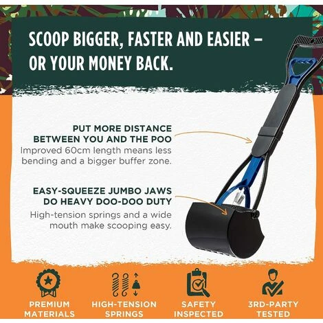 UNE GRANDE TÊTE POUR UNE MEILLEURE EFFICACITÉ : Ramassez les crottes plus facilement que jamais avec la pelle à crottes de ! Nous savons que les jardins sont remplis de déchets en tout genre, raison pour laquelle nous vous proposons une pelle suffisamment