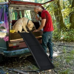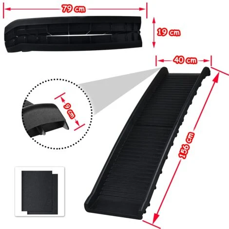 Peut ĂŞtre pliĂ© pour Ă©conomiser de l’espace, avec un revĂŞtement antidĂ©rapant et une rampe pour chien pour les animaux plus âgĂ©s, plus lourds et malades (convient aux chiens de taille moyenne et grande), en particulier lors de l’entrĂ©e et de la conduite dans les escaliers et lorsque
