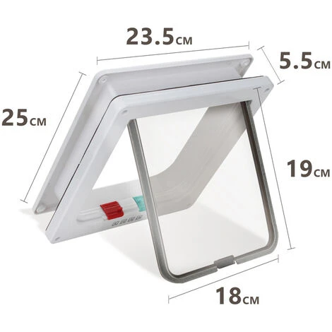 √Taille de la trappe pour animaux domestiques : M : 19,2×20 cm (lxH), taille de la porte : 16×15,7 cm (lxH), épaisseur : 5,5 cm. L : 23,5×25 cm (lxh), taille de la porte : 18×19 cm (lxh), épaisseur : 5,5 cm. Convient aux chats, petits chiens et autres