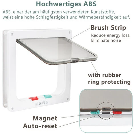 √Matériau de la chatière : le cadre extérieur est en matériau ABS, qui résiste aux intempéries et est facile à nettoyer. La porte mobile est en matériau PC, a une longue durée de vie, est résistante aux UV et hautement transparente, protège des griffes