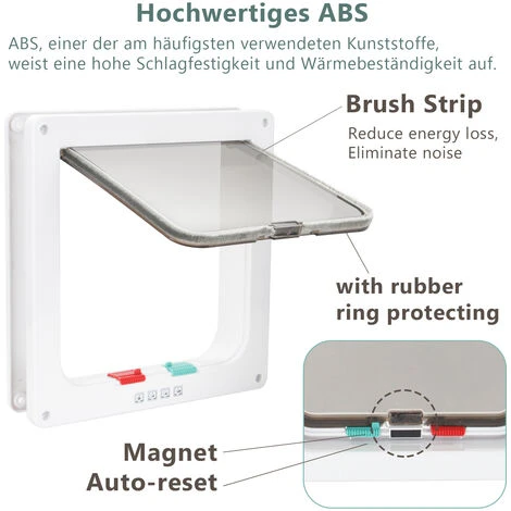 √4 modes de fermeture : la chatière à quatre réglages permet à votre chat d’entrer et de sortir du jardin de manière autonome. Vous n’avez pas à vous soucier du moment où votre animal de compagnie souhaite aller aux toilettes. 4 réglages : ouverture vers
