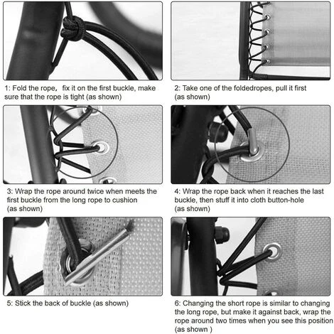 OBTENEZ UNE MEILLEURE CHAISE ZÉRO-GRAVITÉ : Avec les lacets élastiques, il vous sera très facile de réparer vous-même votre fauteuil relax. Vous pouvez obtenir une nouvelle chaise simplement en changeant les cordes. COMPREND 4 CORDONS : Deux longueurs de 78 et deux longueurs de 53, diamètre des lacets : 1/4 (6mm), lacets longs pour le repose-jambes et lacets courts pour le dossier du fauteuil inclinable. Si les élastiques ont été un peu plus longs pour votre fauteuil, vous pouvez passer plusieurs fois dans le trou, l’élastique s’y adaptera bien .FACILE À INSTALLER: Un ensemble de cordes de remplacement comprend un lacet court et un lacet long, le lacet court peut remplacer la partie supérieure de la chaise zéro gravité et le lacet long peut remplacer la partie inférieure de la chaise. chaise zéro gravité. PRATIQUE : Ces lacets peuvent être enroulés facilement et ne prendront que peu de place, ce qui est très facile à ranger et à transporter lorsque vous sortez pour le camping ou la pêche avec votre chaise anti-gravité. HAUTE QUALITÉ : Ces cordons de rechange sont faits de corde dichotomanthes de haute qualité, bonne élasticité, pas facile à porter.