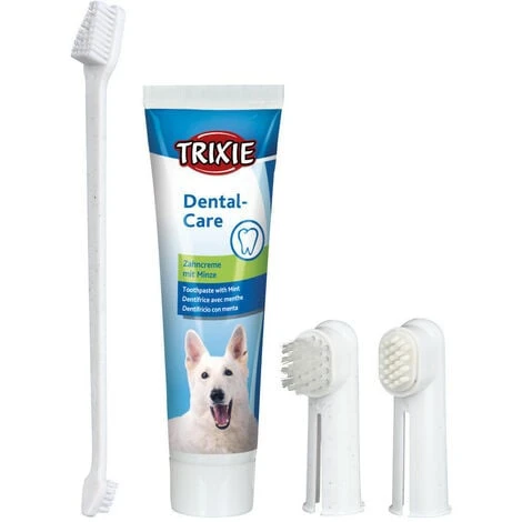 - contient: dentifrice menthe (100 g), une brosse doigt à dent et 1 brosse doigt de massage, une brosse double avec 2 têtes différentes.