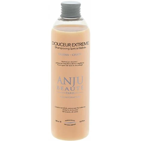 Shampooing pour chiot et chaton Douceur Extrême Anju Beauté.Ce shampoing à base de passiflore est idéal pour nettoyer en douceur les poils de votre animal. Disponible en 250ml ou bidon 1 litre. Shampooing Douceur Extrême Anju Beauté. Nettoie en douceur le pelage délicat des chiots ou chatons, L’extrait de passiflore et les provitamines aident à protéger la barrière cutanée de la peau de votre animal tout en laissant les poils doux et brillants. Pour toutes races et tous pelages. Idéal aussi pour les animaux qui ont la peau très sensible car le Ph est neutre. Senteur vanillée. Caractéristiques et avantages : Hypoallergénique, Préserve l’équilibre et la structure de la fourrure, Renforce la protection de la peau et la brillance du pelage, Préserve l’équilibre dermo-capillaire, Peut être utilisé régulièrement. Disponible en 250ml (C1011) ou bidon 1 litre (C1013).