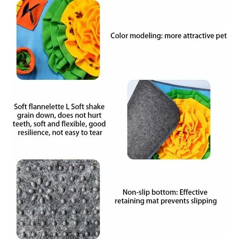 [Matériel] Le tabatière pour chien est en polaire de haute qualité, douce et difficile à déchirer, permettant aux chiens de mâcher en toute confiance. Le fond a une conception antidérapante pour fixer efficacement le tapis pour éviter de glisser. [Slow Food Anti-Choke] Le coussin odorant pour animaux de compagnie est très bon pour cacher la nourriture, imiter la chasse de la nourriture dans la nature, permettre à votre chien de passer un certain temps à le chercher, prolonger le temps de manger et aider à la digestion. [Soulagement des émotions] Les coussinets à priser pour chiens aident les chiens à explorer le monde avec leur nez, à rester occupés et à explorer différentes façons amusantes de manger. Aide à consommer lexcès dénergie, aide à perdre du poids, réduit lanxiété et les comportements destructeurs chez les chiens et maintient la santé mentale des chiens. [Puzzle And Fun] Les jouets denrichissement pour chiens ont différentes conceptions de stockage de nourriture, ce qui est très intéressant. Cela oblige les chiens à se concentrer sur la recherche de nourriture. Il peut mobiliser le nez et le cerveau du chien, corriger les mauvaises habitudes des chiens grâce à lentraînement à lodorat et consommer des chiens. Énergie, exercez lintelligence du chien. [Lavable en machine et lavable à la main] Cette tabatière pour chien peut être lavée à la main ou en machine sans décoloration ni boulochage. Pour garder votre chien en bonne santé, nous vous recommandons de le nettoyer au moins une fois par semaine.