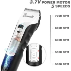 Équipé d’un moteur super puissant qui prend en charge 5 réglages de vitesse, de 5000 tr / min à 7000 tr / min.Vous pouvez choisir une vitesse appropriée pour différentes duretés et parties des cheveux, telles que les oreilles, les pattes, les cheveux doux du visage.