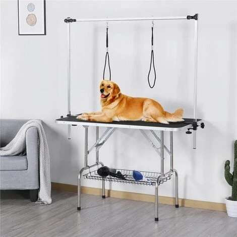 Voici un type de table de toilettage pratique et durable dont vous et votre animal allez tomber amoureux. Table de toilettage pour animaux avec pieds en acier inoxydable et support de rangement en filet ! Cette table est dotée d’une structure solide et peut supporter jusqu’à 120 kg. Elle est livrée avec une grille inférieure pour un rangement temporaire pratique. La surface antidérapante et anti-rayures de la table de toilettage permet aux animaux de rester stables. De plus, les pieds repliables de la table permettent un rangement facile et un gain de place lorsque la table n’est pas utilisée. La table de beauté pour animaux de compagnie contient 8 boutons de tension pour un réglage de la hauteur du bras en toute liberté. De bonne qualité et de conception pratique, ne manquez pas cette table de toilettage pour animaux de compagnie !