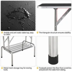 - Table de beauté stable pour animaux de compagnie : Il y a quatre pièces de renfort en métal pour relier et soutenir fermement le plateau et les pieds de la table. Les pièces de liaison en métal forment un triangle pour permettre une grande stabilité à la table. La capacité de charge maximale de la table est de 120 kg.