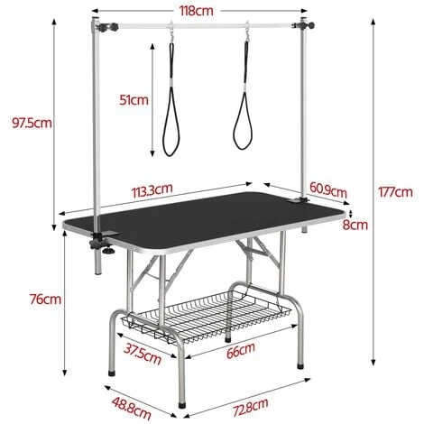 - Pratique à utiliser : La hauteur du cadre en H peut être réglée, et la hauteur maximale est de 177 cm. Deux cordes attachées au cadre servent à stabiliser et à fixer l’animal lorsque vous le baignez, le séchez ou le toilettez. La longueur de la corde est de 51 cm.